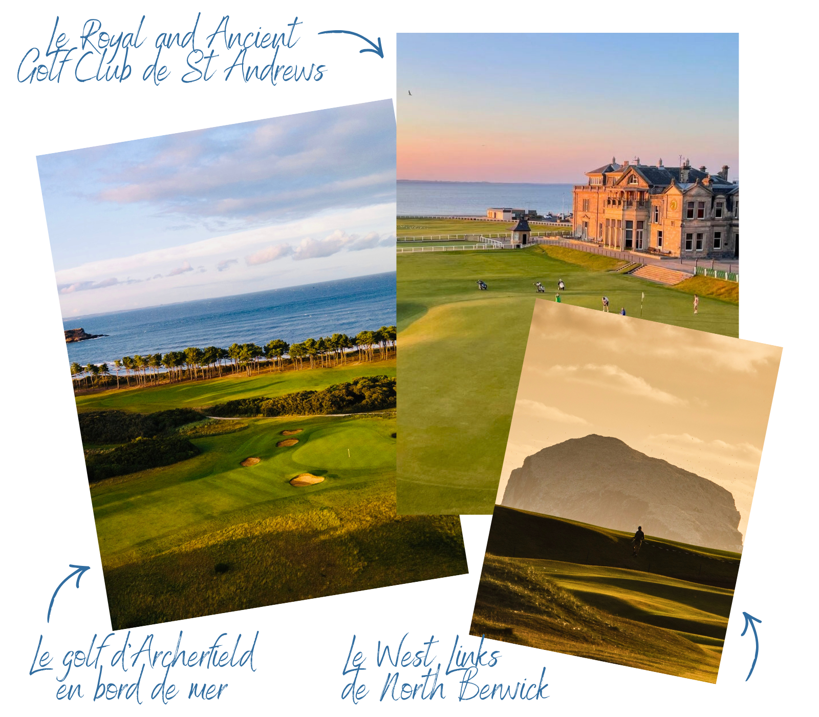 À l’est, la Golf Coast (pdf) compte la plus grande concentration de parcours de championnat au monde (Muirfield, North Berwick, Royal Musselburgh, etc.). Ces « links », en bordure de mer ou dans les dunes, sont réputés pour leur technicité.